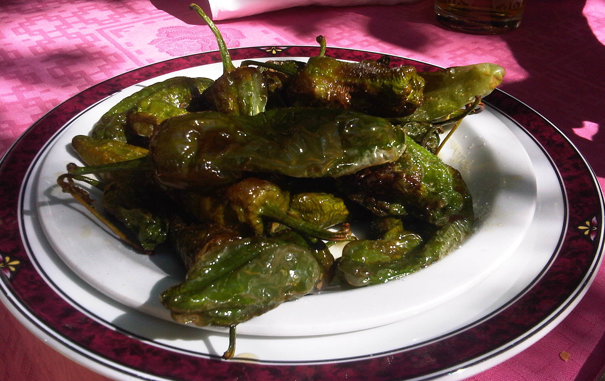 After our hike along the river we stopped in a local shop and bought some local treats. Onions, tomatoes, apples, pumpkin, cherries in strong alcohol, and pickled spicy peppers. The pickled peppers aren’t from Padrón but they are just about as picante!!