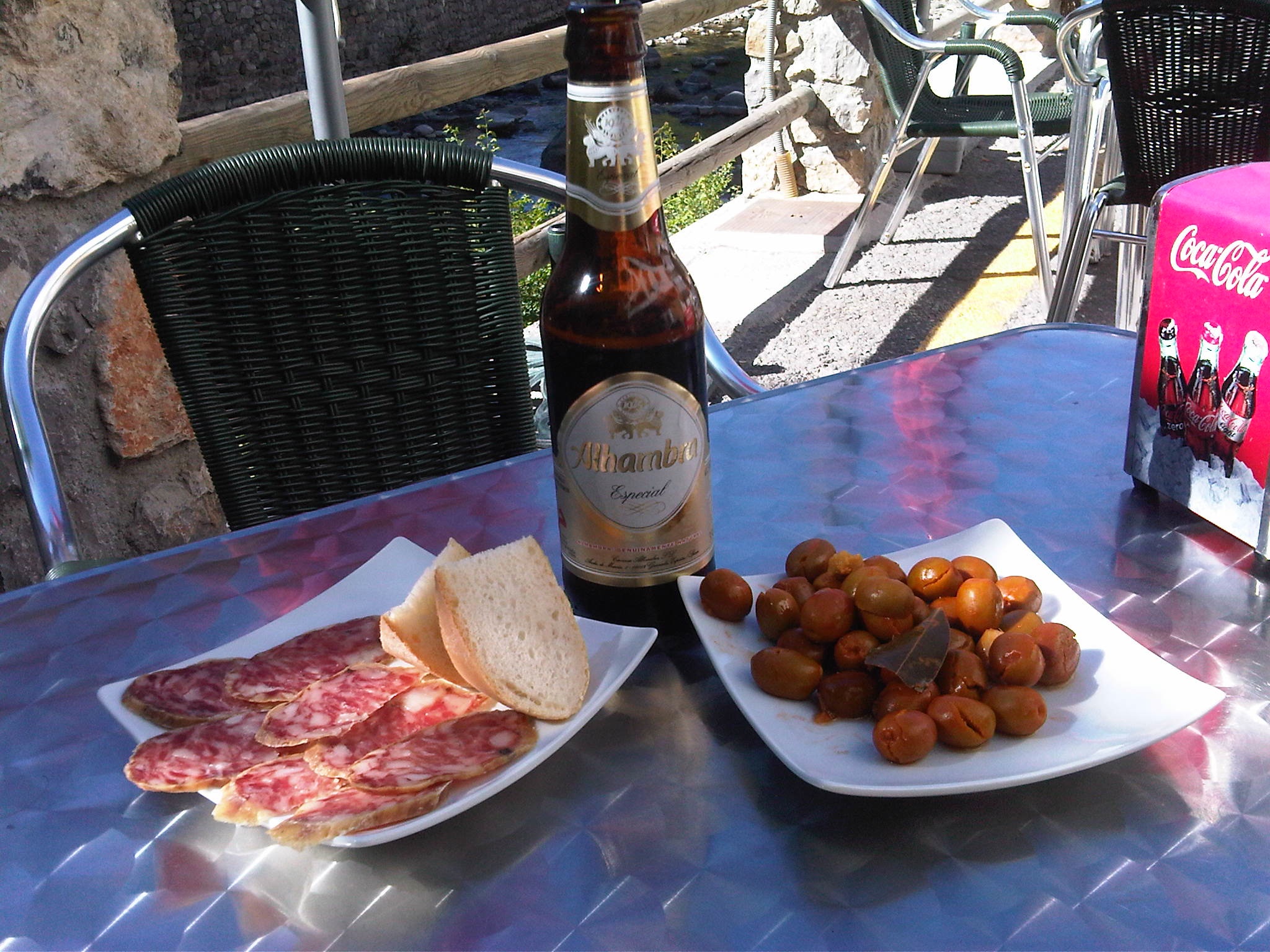 Amazingly, a friend and I both found the energy to grab our bikes for a short ride and went to a beautiful town, Pinos de Genil, on the way to the mountains. After drinking fresh cold water out of the town’s fountain we decided to have a quick beer at Bar Ricardo next to the river. The moment improved when our server brought us a plate of delicious olives that had been seasoned with cumin and paprika and a bit of salchichón (salami). I had one of my “I heart Granada” moments listening to the sound of the river and recalling my Gypsy bliss from the night before. To prolong the feeling we decided to pick Luna up from school early and take her to another beautiful town up in the mountains for lunch and a hike.