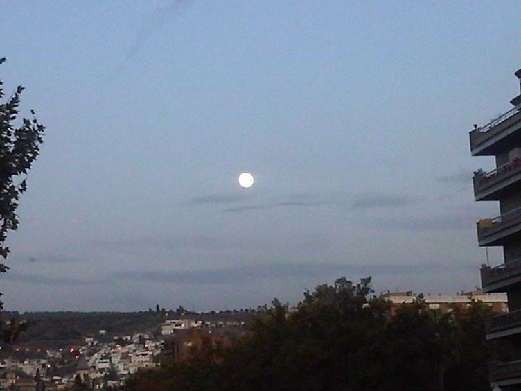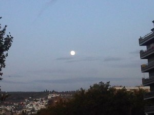 As I walked home this evening with the sun going down I looked up and saw this beautiful moon shining over the city………..another reason to love Granada.
