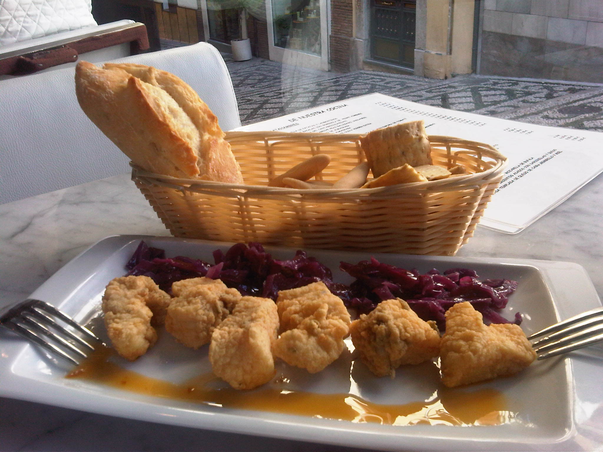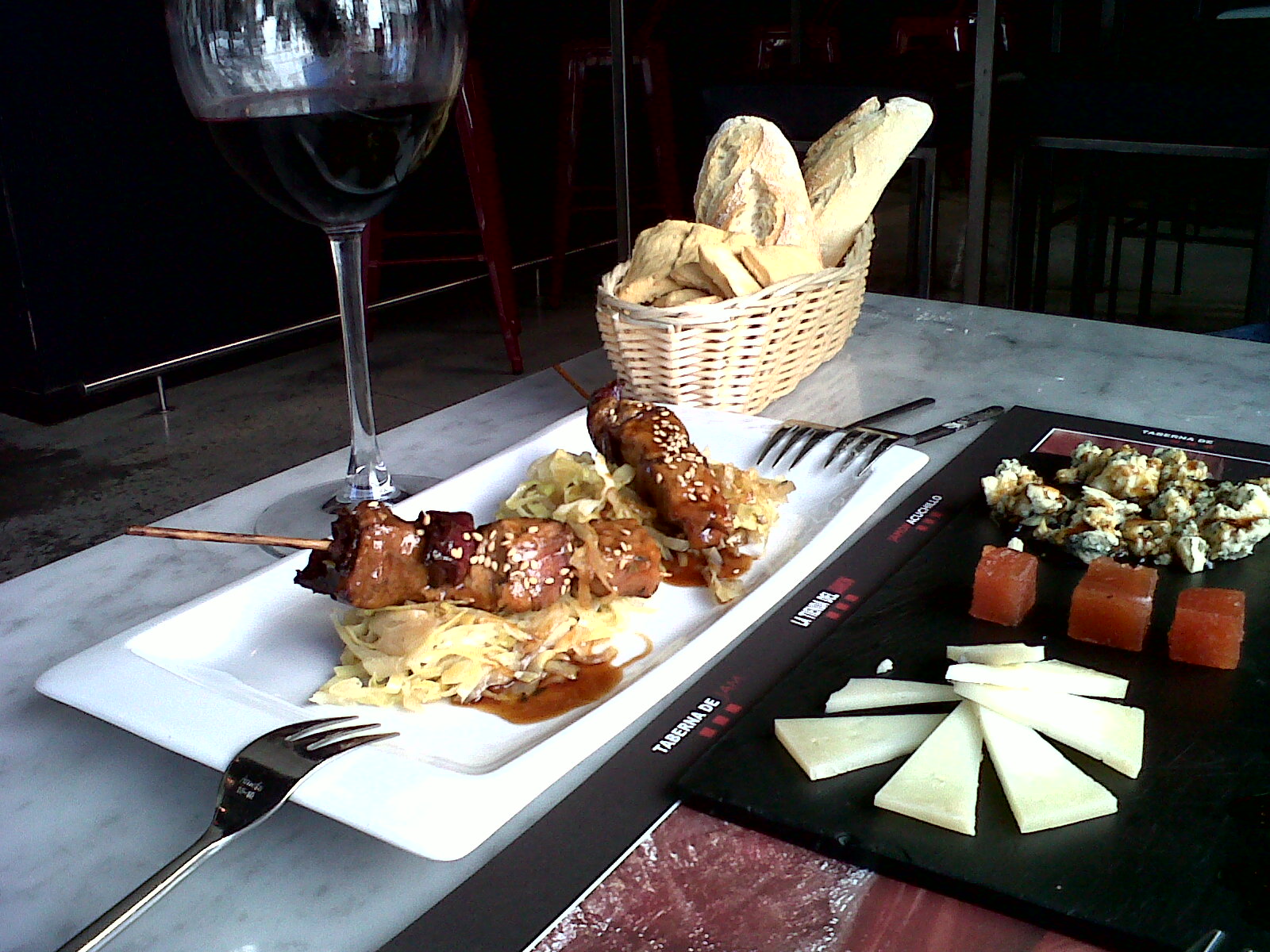 They have an amazing wheel of Stilton cheese that they fill with Pedro Ximènez, a dark and sweet sherry. It is out of this world and the reason to order a cheese platter. It is accompanied by a nice selection of cured manchego´s and reggiano. The tapas are also delicious. On one afternoon we enjoyed a great marinated dogfish with red cabbage and teriyaki chicken with a sweet and sour cabbage salad.