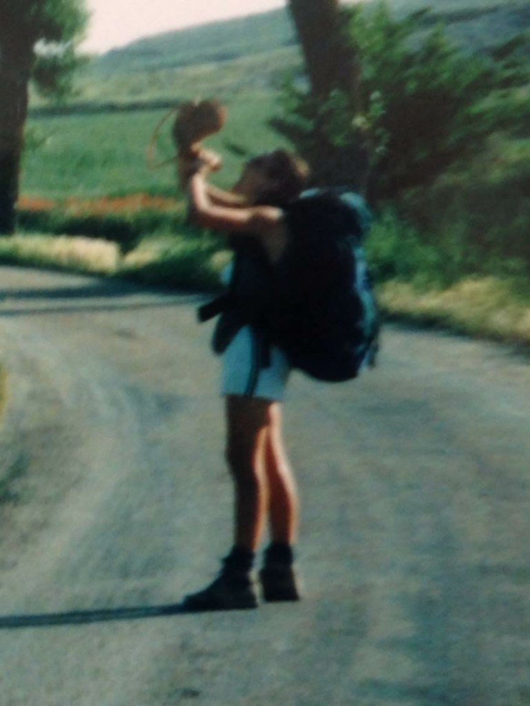 Twelve years ago when I started leading a 16 day bus tour across Northern Spain and Portugal I was reintroduced to a deep part of my being. It wasn’t that I hadn’t revisited the Camino since my own pilgrimages, because I had. Actually, many times to different places and in different situations. I had even walked portions of it with other groups in the past 20 years. But, this time it was different for me. We were not walking the pilgrimage and nor was it the name or theme of the trip. We would talk about the history of the Camino de Santiago, stay in the Paradores, Hostal dos Reis Católicos and San Marcos, visit the Cathedrals and see pilgrims all along the route. Being a two time pilgrim and greatly affected by both experiences I wanted to share the other side of the pilgrimage. So, on that very first tour I began to develop a bus chat that what I named “a day in the life of pilgrim.” I wasn’t quite sure how it would be received or even where it would lead to on that first trip. Surprisingly, my personal story rolled off my lips naturally as I shared the accounts of my two pilgrimages in detail; why I decided to walk 500 miles across Spain alone in 1995, what daily life is like on a pilgrimage, the miracles that happen along the way, important words and legends, the food I ate and people who I met and who touched me. I share the original books I had used for both walks and my pilgrim passports, a bit worn from their age. My voice cracks a few times as I share this piece of myself and when I look up from the microphone I can see tears in some of my guest’s eyes. The questions and comments are profound and true gifts for me. I’ve had some guests come to me with bits of my talk written down for me to “use when I write my book”. There were 10 years difference between my first and second Camino and 10 years from the second Camino until that first bus tour. A lot has changed in almost 30 years, especially myself.