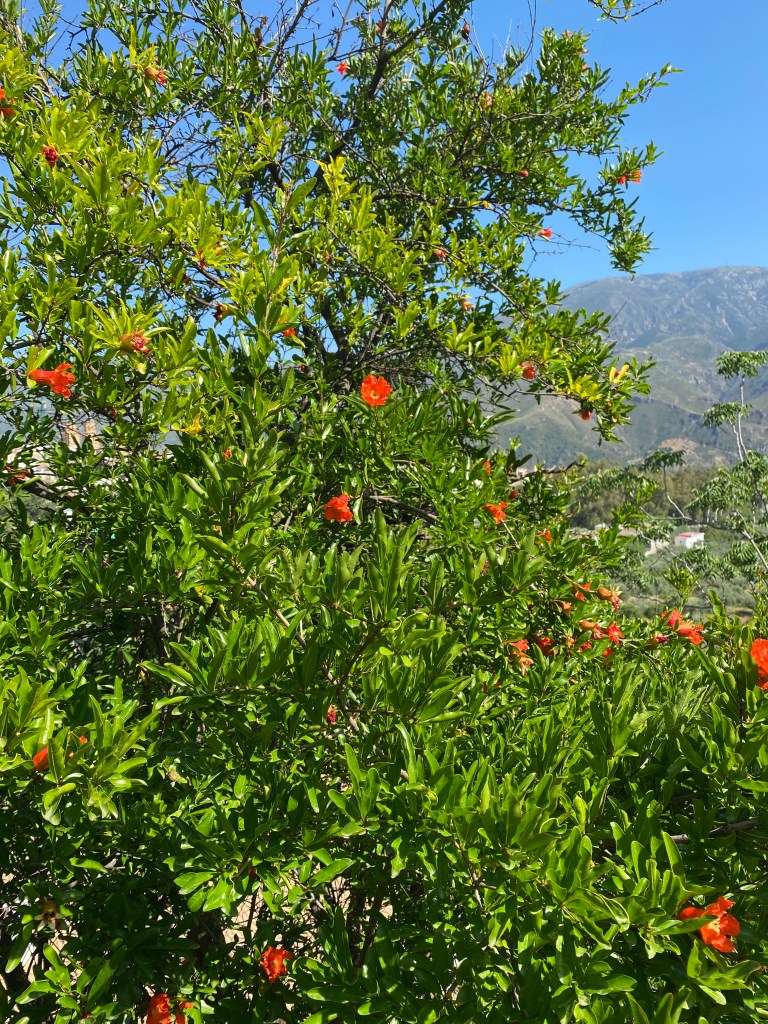 The beautiful blossoms of a pomegranate tree
