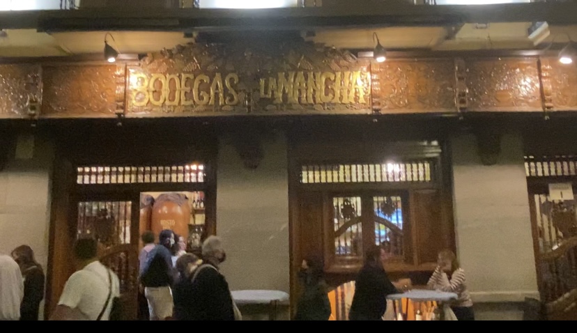 When I lived on this street over twenty years ago we used to frequent La Mancha. Carmen, (may she rest in peace) who ran the Hostal Colonial would send me down the street to grab our dinner on nights that we were feeling too lazy to cook. I would push through the crowds to order our usual. Carmen always wanted a bocadillo with jamón Serrano y roquefort. And I would annoy the men in white shirts and black ties by asking for something ¨”strange” in their eyes. Back then they wouldn’t ever vary off the menu. But, since I lived with Carmen they put up with me and would prepare my bocadillo con queso, tomato y lechuga. Both me and my sandwich were very odd to them back then. We would also get a liter of Jumilla wine to go. I remember paying 115 pesetas for the wine. That was less than a dollar during those years.