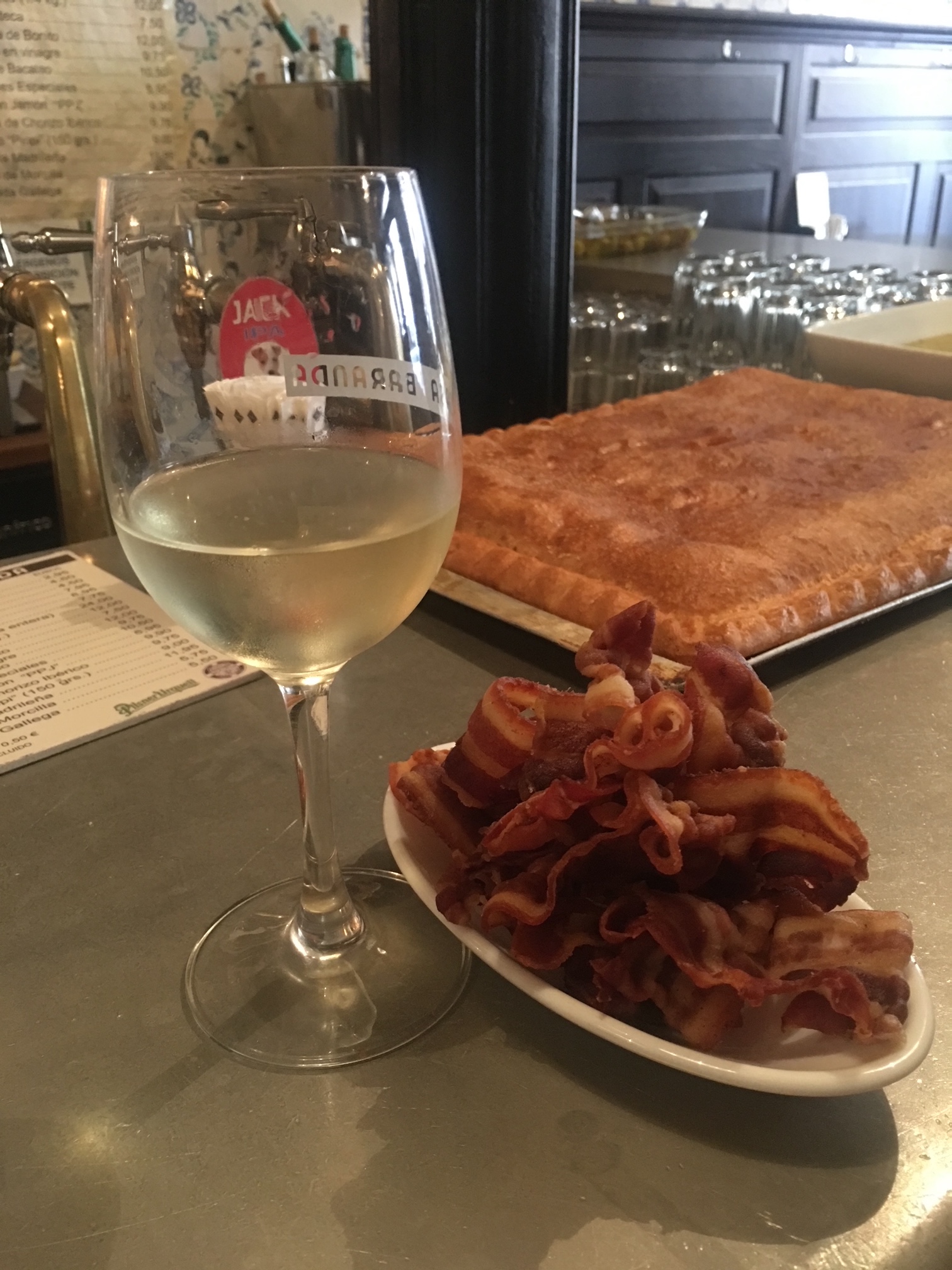 Usually we stick to our favourite bocadillo made with thinly sliced grilled beef, roquefort cheese and a couple of guindillas (pickled spicy peppers). But, last weekend since we were filming the video we went out on a limb and got a plate of Torreznos from Soria. Torreznos is not a food that I consume often. I can probably count the amount of times I have eaten them on one hand. The last two times I ate Torreznos before last weekend was with the same friend. Once in Pamplona and once in Madrid right before confinement. I can still hear Paco saying, “Vamos a ese bar dónde el dueño es Segoviano y tiene unos torreznos buenísimos!”