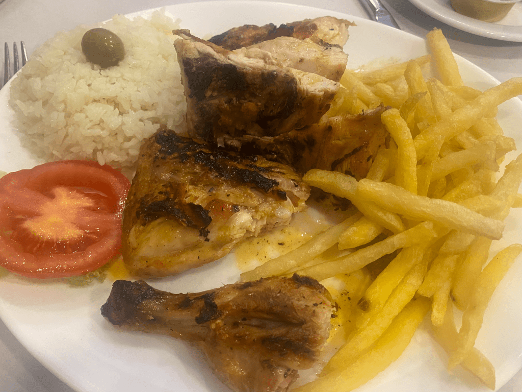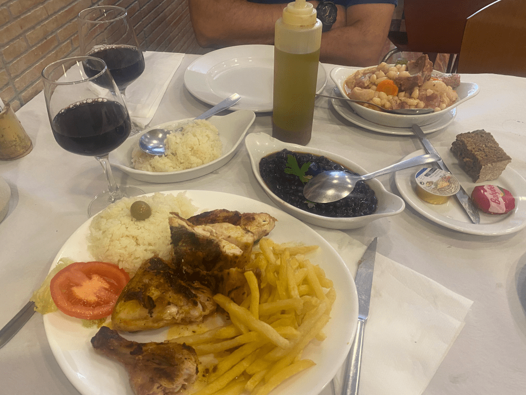 Pilgrims need fuel and there is no better place than Porto to have some great food! I had walked by this restaurant a few times the week before and I knew that Filipe and I needed to eat here! When a restaurant is filled with workers and people from the neighbourhood, like the the older gentleman who is served his meal without even having an order taken, you know you are in the right place. I have grown to have a serious weakness for “frango asado” in Portugal. Nobody does grilled chicken better than Portugal and many African countries. Btw you must read, and if you can, eat here…. https://mooninspain.com/2019/06/12/spice-bcn-must-do/