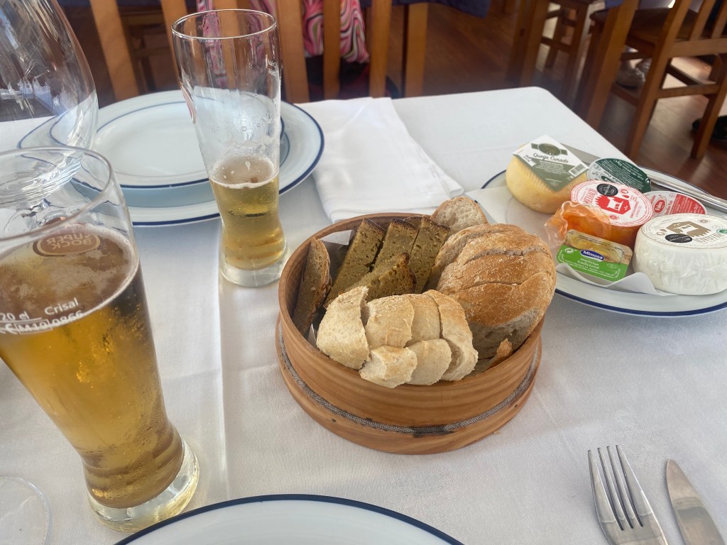 We found the perfect restaurant with one empty table for two. We leaned our packs against the wall outside and settled in. We ordered two beers to go with our cheese and fresh bread. You can never get enough Broa. (see my last post). The cheese came from the same region as the Alvarinho wine that we ordered to accompany the sardines. The region of Melgaço and Monçao is only about 50 kilometres northeast from the coast. All three cheeses were cured goat cheese, one with paprika and Alvarinho wine. While we were killing our hunger with the “couvert” the owner came out and told us that we could move our packs out of the sun and into the restaurant. It was quite the spectacle.